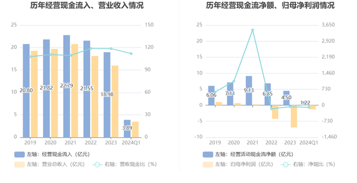 2024年第一季度,公司营业收入现金比为111.99%,净现比为-96.04%。