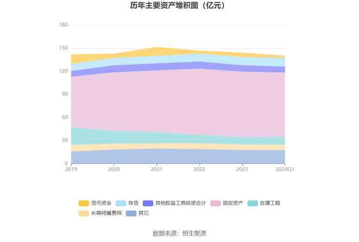 资产重大变化方面,截至2024年一季度末,公司货币资金较上年末减少50.55%,占公司总资产比重下降1.97个百分点;在建工程较上年末增加13.39%,占公司总资产比重上升1.08个百分点;存货较上年末增加7.63%,占公司总资产比重上升0.77个百分点;应收账款较上年末增加6.98%,占公司总资产比重上升0.23个百分点。