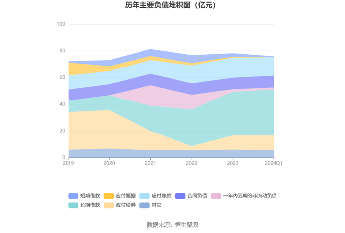 负债重大变化方面,截至2024年一季度末,公司短期借款较上年末减少72.42%,占公司总资产比重下降1.27个百分点;长期借款较上年末增加5.24%,占公司总资产比重上升1.85个百分点;应付账款较上年末减少7.38%,占公司总资产比重下降0.50个百分点;其他应付款(含利息和股利)较上年末减少23.83%,占公司总资产比重下降0.31个百分点。