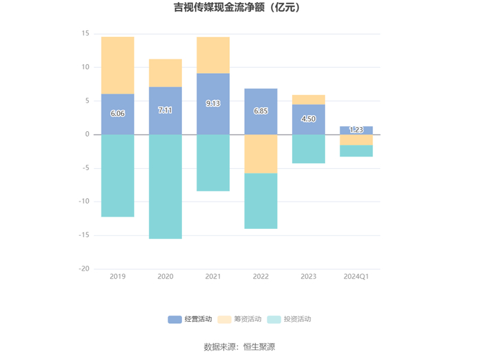 2024年第一季度,公司经营活动现金流净额为1.23亿元,同比增加1.67亿元;筹资活动现金流净额-1.57亿元,同比减少5.30亿元;投资活动现金流净额-1.72亿元,上年同期为-2.19亿元。