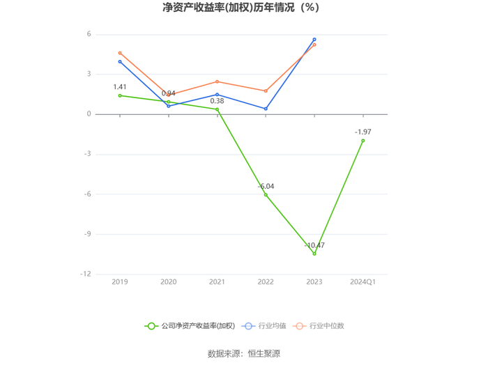 数据显示,2024年第一季度公司加权平均净资产收益率为-1.97%,较上年同期下降2.00个百分点;公司2024年第一季度投入资本回报率为-0.75%,较上年同期下降1.01个百分点。