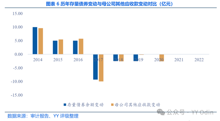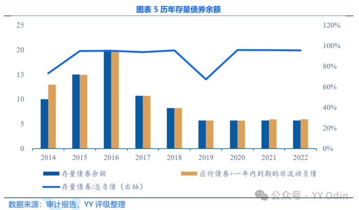 进一步观察合并报表,根据上图存量债券的变化,可以分为2013-2016年的加杠杆阶段与2016-2022年的降杠杆阶段。