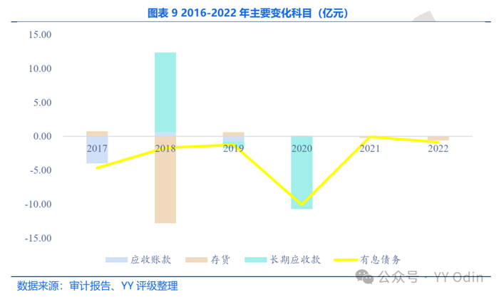 2016-2022年合并口径有息债务整体减少18.6亿,主要是债券余额减少16.8亿,该阶段。其中主要的降杠杆年份是2017年与2020年。