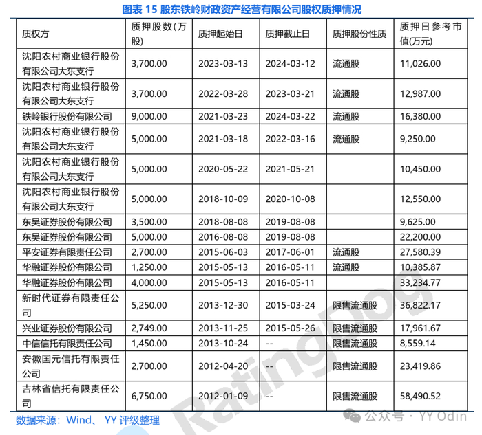 对于股东铁岭财政资产经营有限公司,其频繁质押铁岭新城股份,至2015年前后已累计质押其持有的一半上市公司股份。