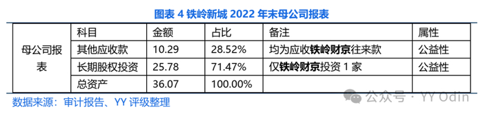 直接将历年来债券余额的变动情况与母公司报表资产端进行对比,每年债券融资的增减规模与母公司其他应收款增减一一对应(除2019-2020年使用2.5亿短期银行借款周转,存在一年滞后),而其他应收款对手方仅有铁岭财京一家。判断铁岭新城主体举债均拆借给城投子公司铁岭财京,而近年偿债也均依赖铁岭财京还款。