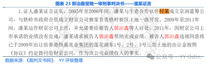 但此处有个疑点,出面的行贿人潘某指潘旭闽或潘友长(大概率为前者),两人在多家公司共同有持股或任职,推测为亲属关系。但是两人并不直接持有铁岭财京或铁岭新城的股权,与铁岭的关系仅包括潘友长担任股东京润蓝筹的董事、潘旭闽任铁岭财京副董事长。