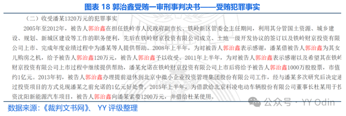 2018年7月,借壳上市期间时任铁岭市副市长(2005-2017)、铁岭新区管委会主任(2007-2013)、铁岭财京董事长(2006-2011)郭治鑫因滥用职权、挪用公款、受贿、行贿被判有期徒刑14年。