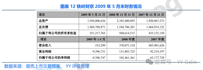 当时根据《资产评估报告》对铁岭财京的估值为25.78亿元,并以此为基准以当时股价折合2.52亿股。而据交易预案披露,铁岭财京2009年5月末净资产仅5.51亿。
