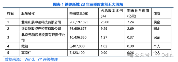2023年7月20日,铁岭国资委批复同意将铁岭新城(000809.SZ)25%的 A 股股份,即 206,197,823 股,以3.5337 元/股,合计7.29亿对价转让给民企北京和展中达科技有限公司。自此民企成为第一大股东,铁岭市国资委失去对其控制权,公司属性变更为民企。