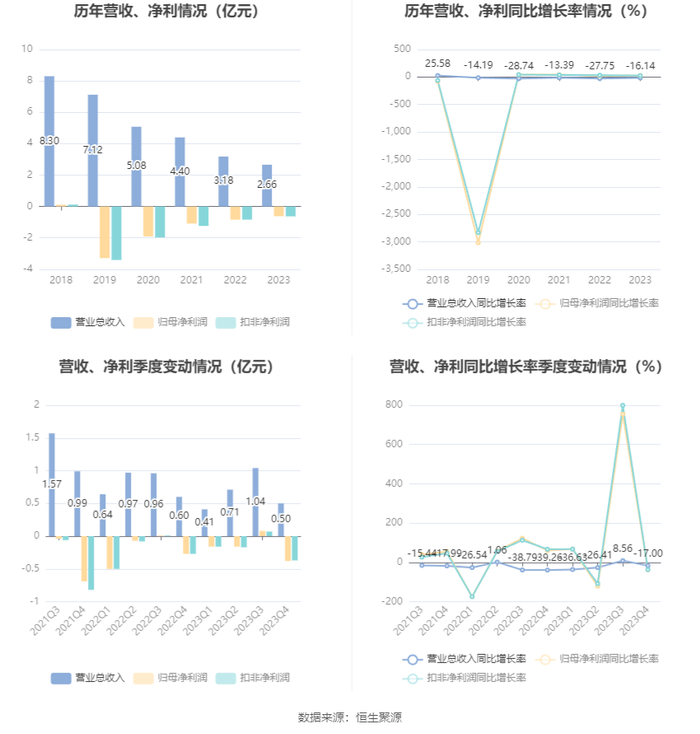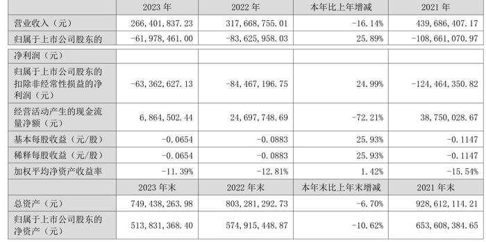 数据显示,2023年公司加权平均净资产收益率为-11.39%,较上年同期增长1.42个百分点;公司2023年投入资本回报率为-8.82%,较上年同期增长1.18个百分点。