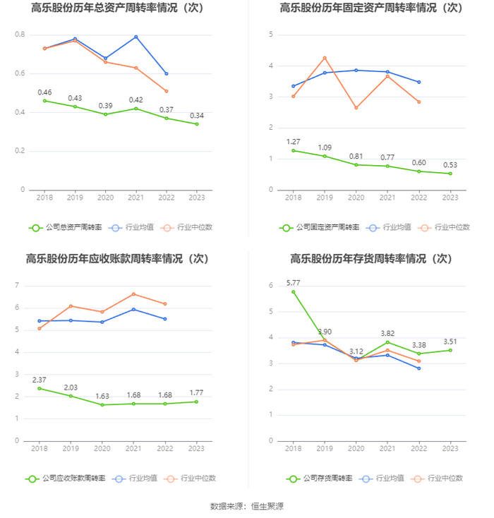 数据统计显示,高乐股份近三年营业总收入复合增长率为-19.34%,在娱乐用品行业已披露2023年数据的10家公司中排名第10。近三年净利润复合年增长率为18.78%,排名2/10。
