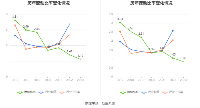 2023年,公司流动比率为1.12,速动比率为0.85。