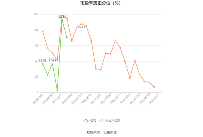 市盈率为负时,不显示当期分位数,会导致折线图中断。