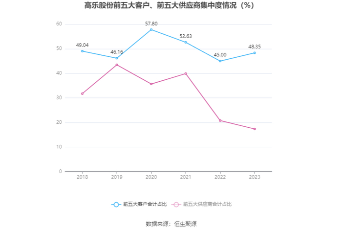 报告期内,公司前五大客户合计销售金额1.29亿元,占总销售金额比例为48.35%,公司前五名供应商合计采购金额0.24亿元,占年度采购总额比例为17.37%。