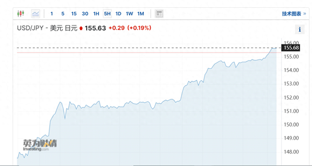 3月以来,日元成为了全球最受关注的货币,没有之一。即使是在中国内地,众多投资者对日元的关注甚至超出了人民币。4月24日,日元对美元汇率延续弱势,站上155,为1990年6月以来首次。25日,日元对美元正朝着156迈进。