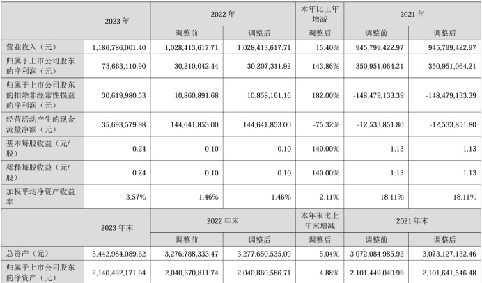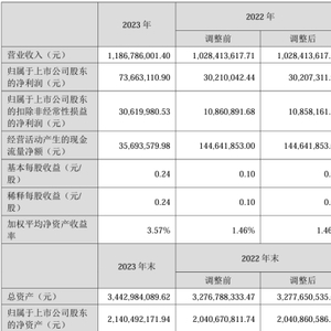 挖贝网4月25日,哈三联 近日发布2023年年度报告,报告期内公司实现营业收入1,186,786,001.40元,同比增长15.40%;归属于上市公司股东的净利润73,663,110.90元,同比增长143.86%。