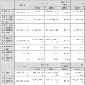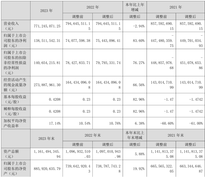 挖贝网4月25日,科德教育 近日发布2023年年度报告,报告期内公司实现营业收入771,245,071.25元,同比下滑2.94%;归属于上市公司股东的净利润138,511,542.31元,同比增长83.60%。