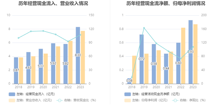 2023年,公司营业收入现金比为107.30%,净现比为107.77%。