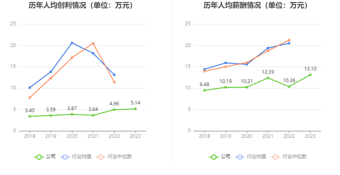 截至2023年末,公司员工总数为1686人,人均创收45.87万元,人均创利5.14万元,人均薪酬13.10万元,较上年同期分别增长20.64%、3.59%、26.45%。