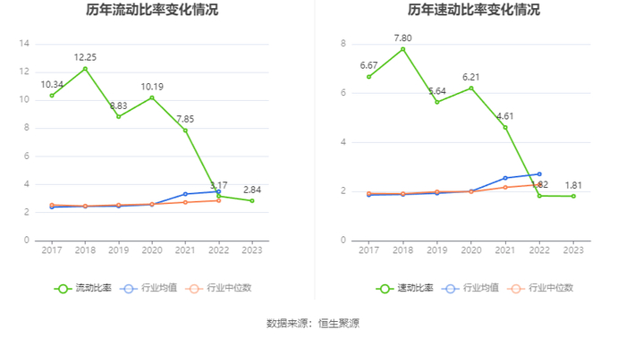 2023年,公司流动比率为2.84,速动比率为1.81。