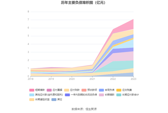 负债重大变化方面,截至2023年年末,公司其他应付款(含利息和股利)较上年末增加374.37%,占公司总资产比重上升3.65个百分点;短期借款较上年末增加174.67%,占公司总资产比重上升3.38个百分点;长期应付款合计较上年末减少25.00%,占公司总资产比重下降2.17个百分点;应付账款较上年末减少32.41%,占公司总资产比重下降1.84个百分点。