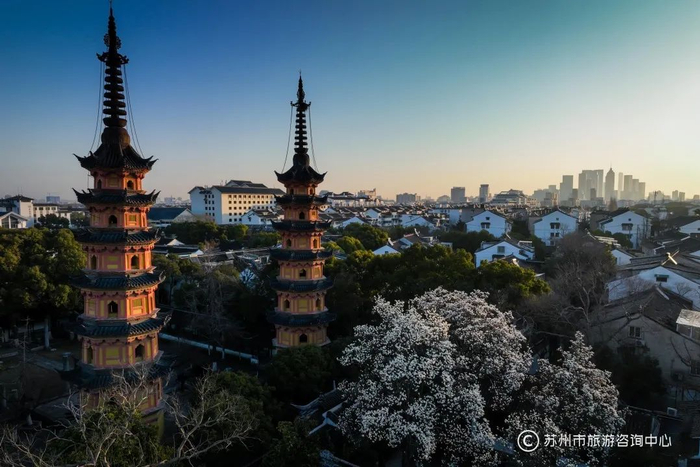 互联网上的“出圈日常”——出站即是满目樱花的“最美地铁口”、与罗汉院双塔相映成趣的“网红白玉兰”、出片率极高的红砖“苏州墙”、山塘街精致的绣球花冰淇淋……