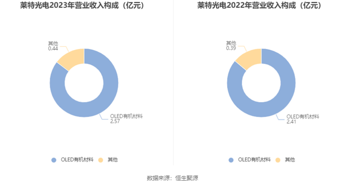 分产品来看,2023年公司主营业务中,OLED有机材料收入2.57亿元,同比增长6.79%,占营业收入的85.58%。