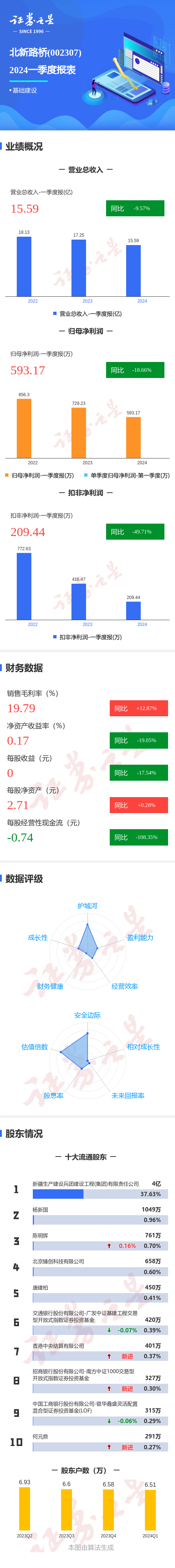 图解北新路桥一季报:第一季度单季净利润同比减18.66%