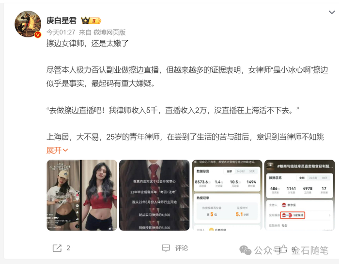 律师社交账号也要上报了?小冰心摊上事,美女律师劝同行擦边直播...