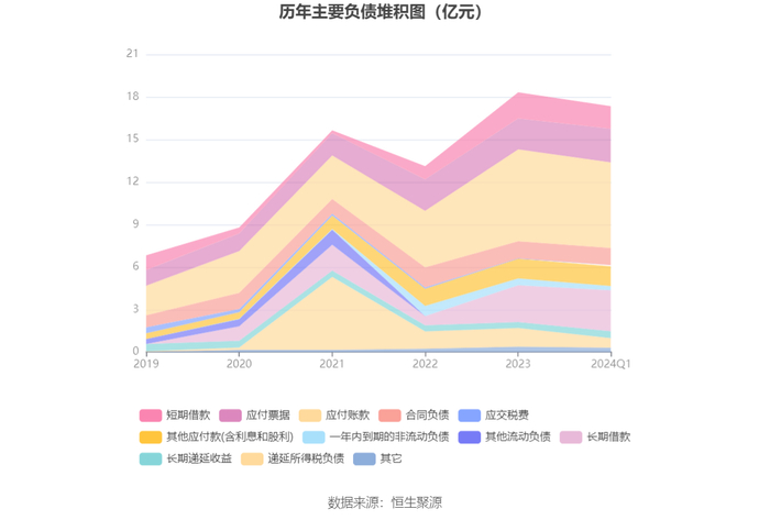 负债重大变化方面,截至2024年一季度末,公司递延所得税负债较上年末减少48.63%,占公司总资产比重下降1.08个百分点;应付账款较上年末减少6.75%,占公司总资产比重上升0.21个百分点;长期借款较上年末增加11.41%,占公司总资产比重上升1.04个百分点;短期借款较上年末减少12.67%,占公司总资产比重下降0.17个百分点。