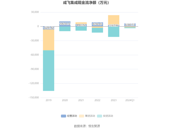 2024年第一季度,公司经营活动现金流净额为6380.73万元,同比增加7441.45万元;筹资活动现金流净额-1651.79万元,同比减少5989.66万元;投资活动现金流净额-1877.03万元,上年同期为-5271.39万元。