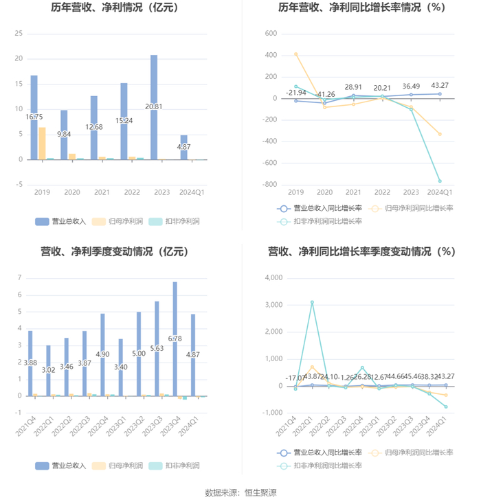 数据显示,2024年第一季度公司加权平均净资产收益率为-0.19%,较上年同期下降0.27个百分点;公司2024年第一季度投入资本回报率为0.39%,较上年同期增长0.05个百分点。