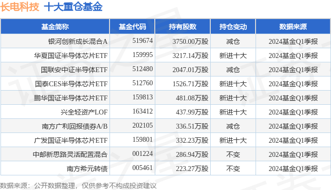 重仓长电科技的前十大基金见下表: