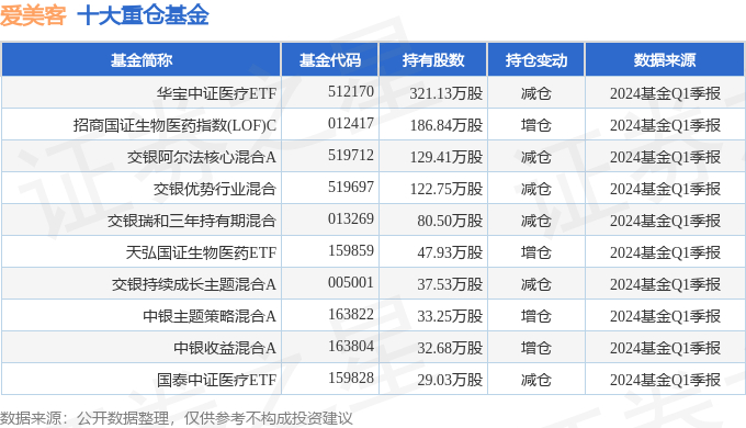 重仓爱美客的前十大基金见下表: