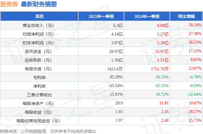 爱美客(300896)2024年一季报简析:营收净利润同比双双增长