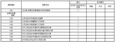 2023年度股东大会提案表决意见表