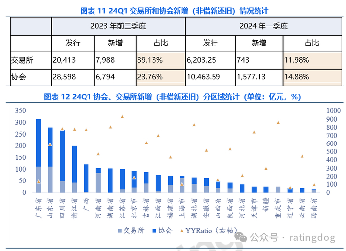 分发行场所来看,交易所和协会的新增比例分别为11.98%和14.88%。