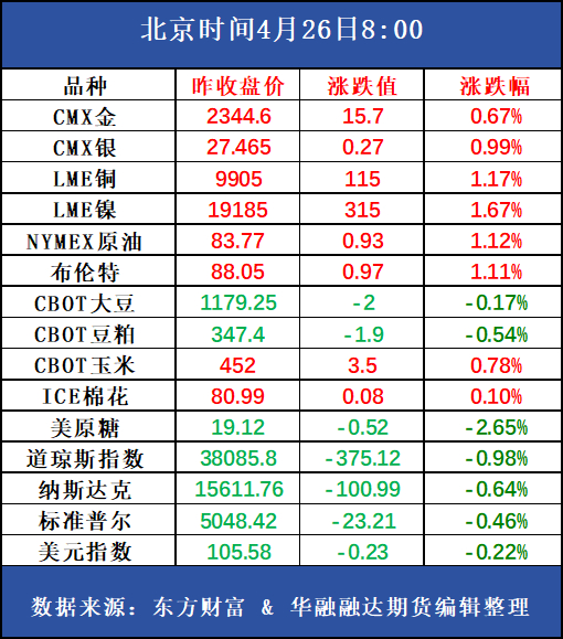 【宏观】:国内方面,2024年第一季度中国GDP同比+5.3%,高于市场预期的4.92%键变量。消息方面,据发改委:推动2023年增发国债项目加快建设实施,所有增发国债项目于今年6月底前开工建设。国外方面,宏观方面,主要核心矛盾有两个方面:1,降息预期转再通胀交易带动贵金属及有色价格上涨,只有降息预期到确定再次加息的转向才能完全终结这种情形,而并非关注何时降息。欧元区4月制造业PMI初值录得45.6,前值46.1,预期46.6,再通涨交易受到打压。如果本周五美国核心PCE超预期反弹,则又会进一步打压到降息预期,甚至会提前交易5月议息会议点阵图给出再次加息路径,这会增加价格回调的深度。2,如果经济严重衰退,其带来的需求坍缩会迅速终结过高铜价。目前宏观仍然在走第一种逻辑。中长期视角,只要全球经济未给出衰退风险的信号,铜价上的多头思路仍在。