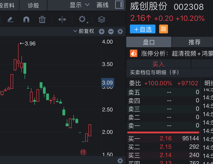 威创股份(002308.SZ)也是在4月24日爆发,4月24日、25日已连续两个涨停。