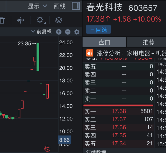 在其强势呐喊声中,春光科技(603657.SH)、同为股份(002835.SZ)在盘面上,也有所响应,股价出现拉升。最终春光科技在4月25日涨停,同为股份涨幅5.88%。