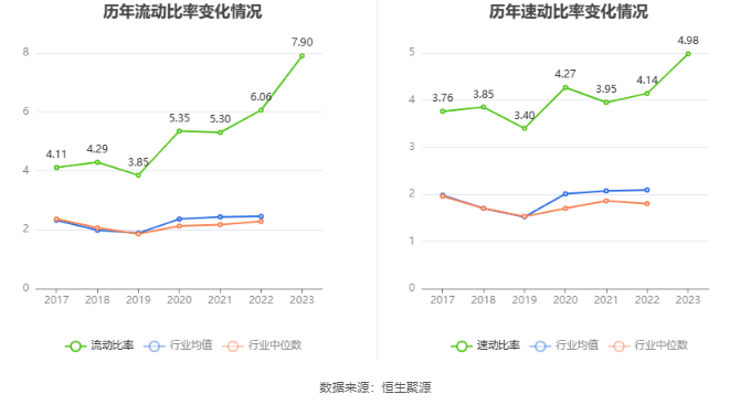 2023年,公司流动比率为7.90,速动比率为4.98。