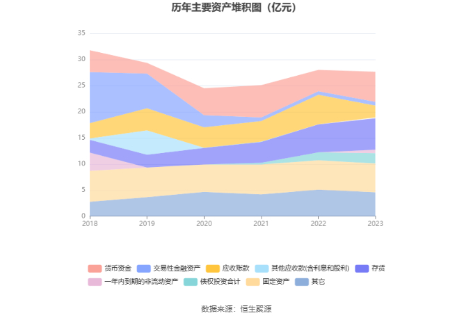 资产重大变化方面,截至2023年年末,公司应收账款较上年末减少60.18%,占公司总资产比重下降12.00个百分点;货币资金较上年末增加40.80%,占公司总资产比重上升6.24个百分点;存货较上年末增加12.21%,占公司总资产比重上升2.64个百分点;债权投资合计较上年末增加30.25%,占公司总资产比重上升1.73个百分点。