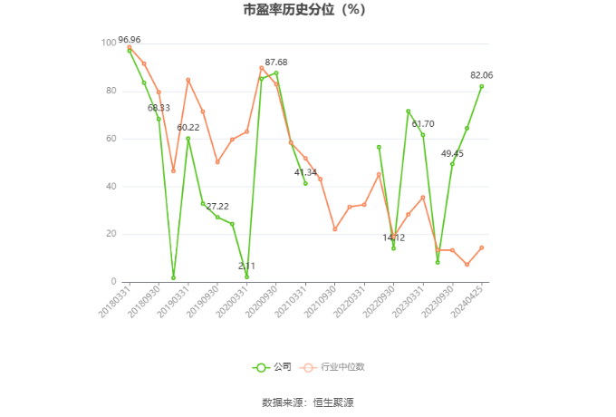 市盈率为负时,不显示当期分位数,会导致折线图中断。