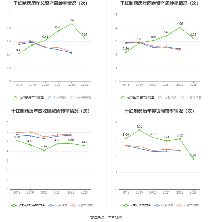 营运能力方面,2023年,公司公司总资产周转率为0.65次,上年同期为0.87次(2022年行业平均值为0.43次,公司位居同行业9/112);固定资产周转率为3.25次,上年同期为4.06次(2022年行业平均值为2.45次,公司位居同行业21/112);公司应收账款周转率、存货周转率分别为4.59次、1.81次。