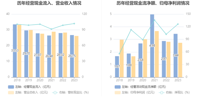 2023年,公司营业收入现金比为102.12%,净现比为126.35%。