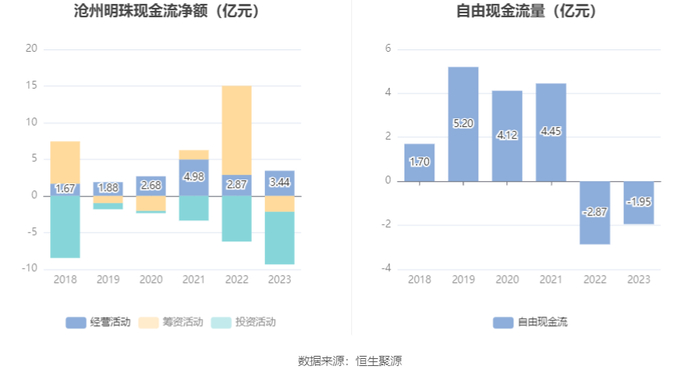 进一步统计发现,2023年公司自由现金流为-1.95亿元,上年同期为-2.87亿元。