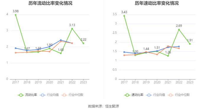 2023年,公司流动比率为2.22,速动比率为1.91。