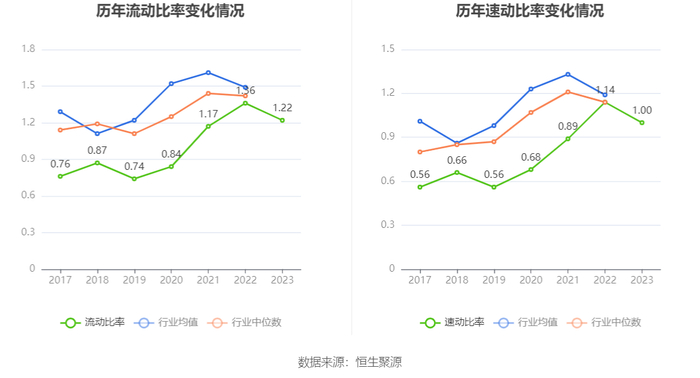 2023年,公司流动比率为1.22,速动比率为1.00。