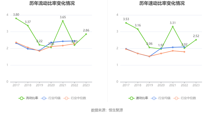 2023年,公司流动比率为2.86,速动比率为2.52。