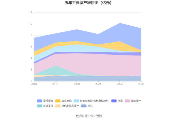 资产重大变化方面,截至2023年年末,公司应收账款较上年末减少82.07%,占公司总资产比重下降12.83个百分点;货币资金较上年末增加20.10%,占公司总资产比重上升10.04个百分点;其他应收款(含利息和股利)较上年末减少83.17%,占公司总资产比重下降2.55个百分点;存货较上年末增加29.45%,占公司总资产比重上升1.89个百分点。